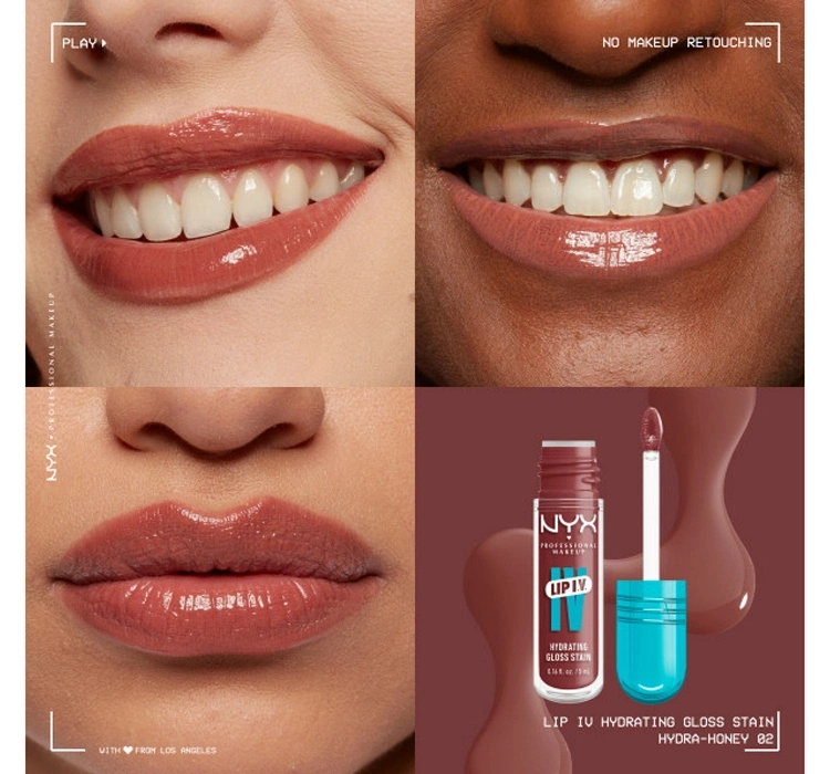 NYX Professional Makeup Lip IV Hydrating Gloss Serum ist ein innovatives Lip Gloss, das intensiven Glanz mit langanhaltendem Tint-Effekt verbindet. Schon bei der ersten Anwendung verleiht es den Lippen tiefen, nassen Glanz, der mit der Zeit einem natürlichen, gleichmäßigen Farbton weicht.