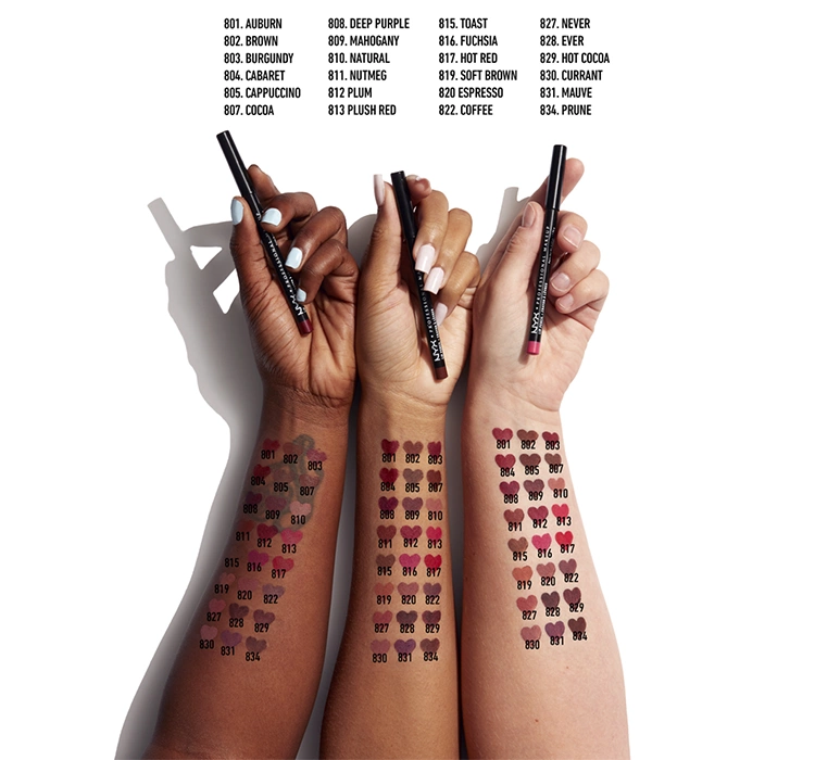 NYX Professional Makeup Lip Liner harmonieren perfekt mit den Lippenstiften aus der gleichen Kollektion und betonen die Lippenkonturen noch mehr.