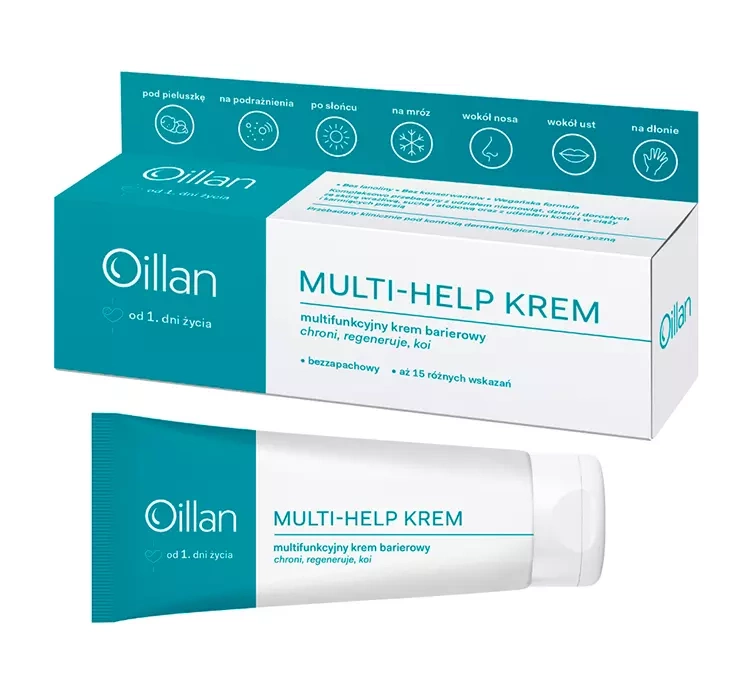 Die multifunktionale Barrierecreme Oillan Multi-Help ist eine spezialisierte Kosmetik zur lokalen Pflege und Schutz der Haut. Die reichhaltige Rezeptur wurde sorgfältig entwickelt und wirkt sich perfekt auf das Aussehen und den Zustand der Haut aus. Sie ist besonders empfehlenswert für gereizte, gerötete oder juckende Haut, die übermäßiger Sonneneinstrahlung, Kälte oder starkem Wind ausgesetzt war.