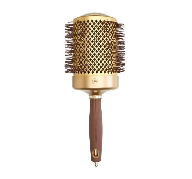• Die runde Haarbürste Olivia Garden Expert Blowout Shine Wavy Bristles Gold & Brown ist ideal für jeden Friseursalon.