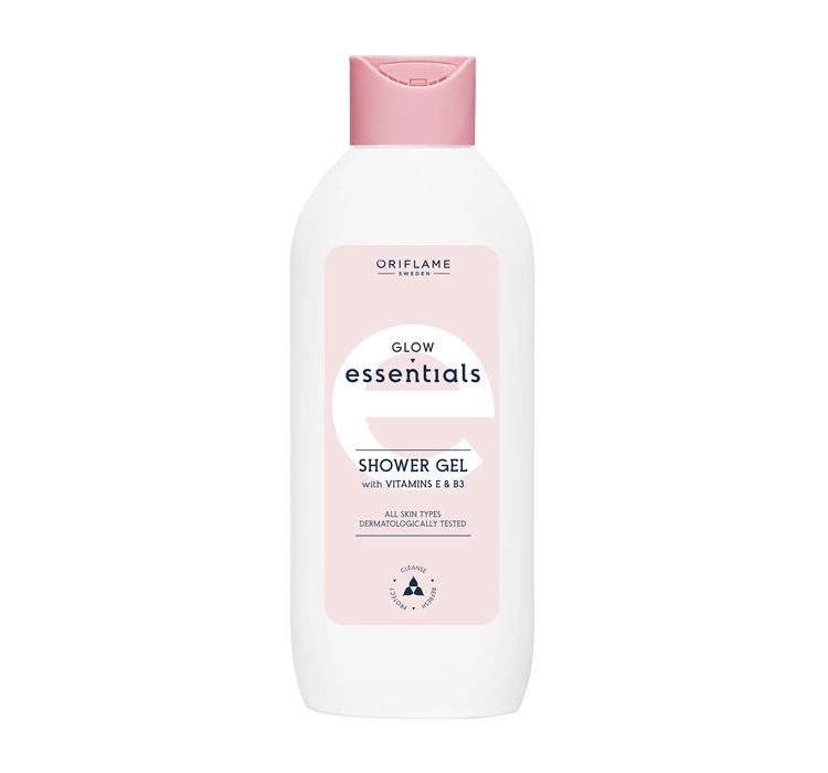 Oriflame Glow Essentials Duschgel reinigt die Haut nicht nur effektiv, sondern unterstützt auch ihr gesundes Aussehen. Für beste Ergebnisse empfiehlt es sich, das Gel zusammen mit der Körperlotion derselben Linie zu verwenden.