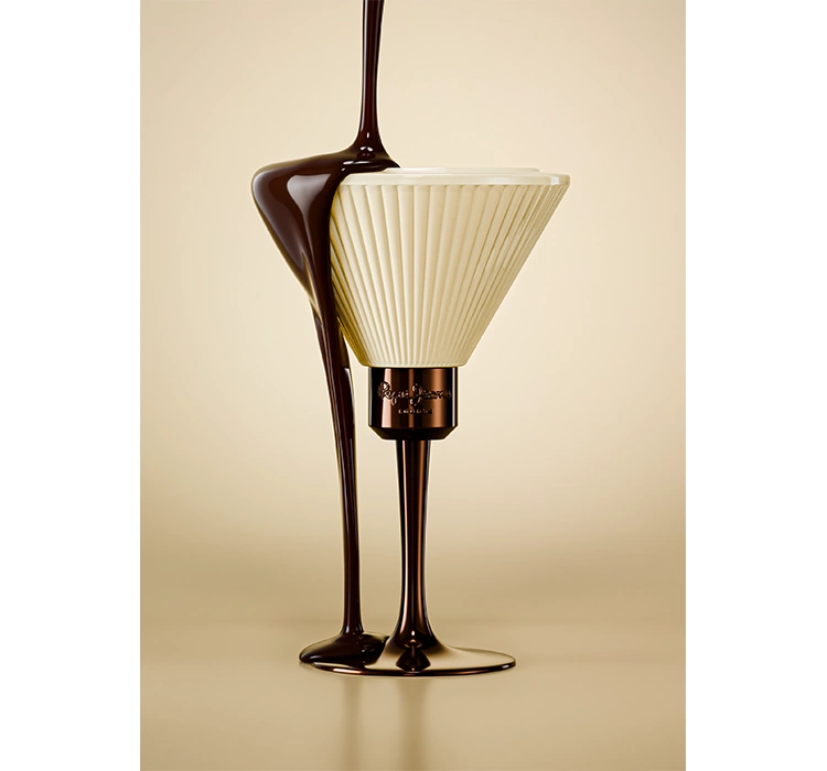 Der Flakon des Pepe Jeans Addictive Indulgence for Her Eau de Parfum ist ein echter Augenschmaus in Form eines Cocktailglases mit cremigem, plissiertem Glas und einer metallischen Basis, die wie eine dunkle Schokoladenglasur glänzt. Ein Design, das eines sagt: Mach dich bereit für die Versuchung.