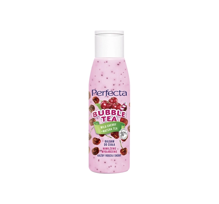 Perfecta Bubble Tea Wildkirsche + Matcha Tee ist ein feuchtigkeitsspendender Körperbalsam mit angenehmem Duft, der die Haut optimal pflegt und sie jeden Tag schön und gesund aussehen lässt. Die Formel des Kosmetikprodukts enthält 97% Inhaltsstoffe natürlichen Ursprungs. Kleine Flasche in Reisegröße.