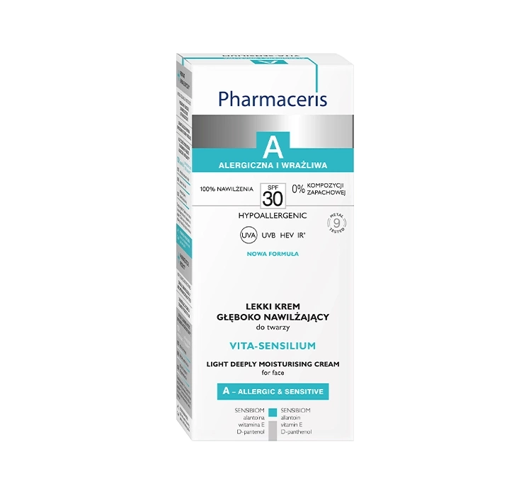 Die Pharmaceris A Vita-Sensilium leichte Feuchtigkeitscreme wird für die tägliche Pflege von zu Allergien neigender, überempfindlicher Haut empfohlen, die zu Trockenheit und Austrocknung neigt.