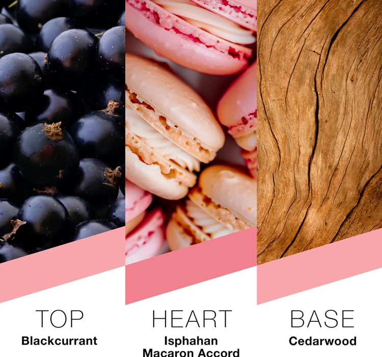 Im Herzen des Prêt à Porter Paris entfaltet sich die besondere Süße des Isfahan-Macaron-Akkords, der samtige Weichheit und eine kulinarische Note französischer Patisserie mitbringt. Begleitet wird er von Rose und Jasmin – Blumen, die Eleganz und zeitlose Weiblichkeit symbolisieren. So erhält das Prêt à Porter Fashion Collection Paris Eau de Parfum einen romantischen Charakter, in dem Sinnlichkeit auf Zartheit trifft.