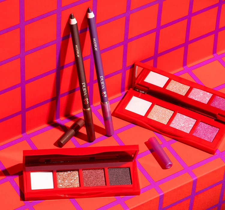 Die Feiertagskollektion Pupa Holiday Land wurde von den Trends der 80er Jahre inspiriert. Diese Zeit war geprägt von lebendigen und kräftigen Farben. Daher überrascht es nicht, dass das klassische Rot der Verpackungen mit einem karierten Muster in Fuchsia verziert ist, was einen exzentrischen und reichen Kontrast schafft. Zudem wird durch zarte goldene Akzente in den dekorativen Details der Kartons eine sinnliche Eleganz verliehen. Die kühnen Farben der Kosmetika aus der Kollektion Pupa Holiday Land erlauben es dir, dich auszudrücken und deine Individualität zu betonen, während das mit ihnen geschaffene Make-up dich in die magische Atmosphäre der großartigen 80er Jahre versetzt.