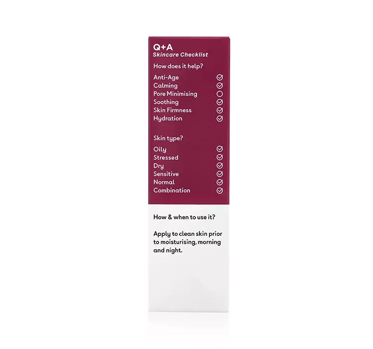 Die tägliche Hautpflege mit der Marke Q+A ist unglaublich einfach und intuitiv. Unter den vielen Produkten findet man Lösungen für Reinigung, Make-up-Entfernung, Tonisierung, Pflege und Regeneration der Haut. Die Serien unterscheiden sich durch die Zugabe natürlicher aktiver Inhaltsstoffe, die helfen, die Haut umfassend zu pflegen und ihre individuellen Bedürfnisse zu erfüllen. Auf jedem Produkt befindet sich eine detaillierte Tabelle mit den spezifischen Eigenschaften des Produkts – ein Blick darauf lohnt sich!