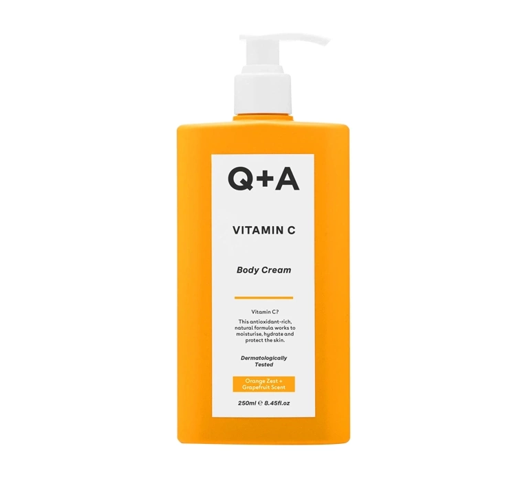 Der Q+A Vitamin C Körperbalsam hat eine antioxidative Wirkung und unterstützt somit den Kampf gegen vorzeitige Hautalterung. Der angenehme, energetisierende Duft von Orangenschale und Grapefruit sorgt für Energie und motiviert zum Handeln. Der Balsam glättet, strafft und macht die Haut elastisch, wodurch sie gesund aussieht und einen natürlichen Glanz erhält. Besonders geeignet für trockene Haut oder Haut, die eine Revitalisierung benötigt.