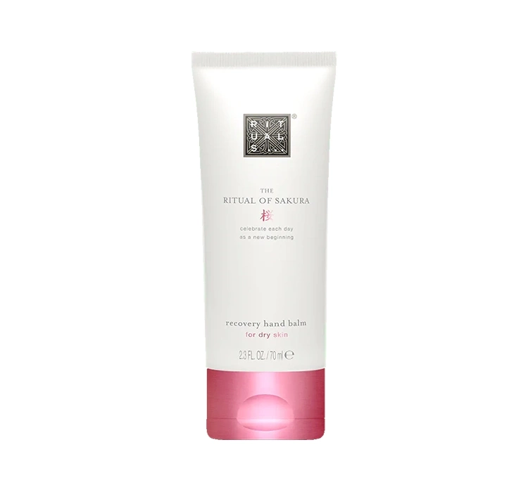Rituals The Ritual of Sakura pflegender Handbalsam bietet intensive Pflege und Regeneration selbst für sehr trockene Haut. Die reichhaltige Formel basiert auf über 95 % Inhaltsstoffen natürlichen Ursprungs, wodurch sie wirksam und zugleich sanft zur Haut ist. Ideal für alle, die Linderung und Komfort für rissige Hände suchen.