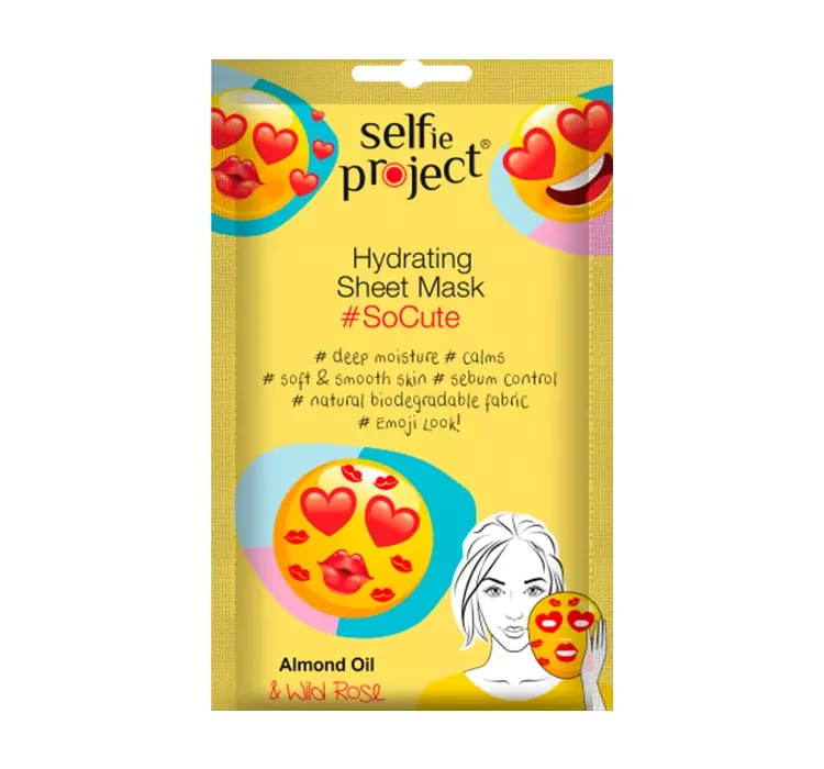 Die Selfie Project Hydranting So Cute ist eine feuchtigkeitsspendende Tuchmaske, ideal für alle Hauttypen, insbesondere für trockene und dehydrierte Haut. Die innovative Formel enthält eine effektive Kombination aus Wirkstoffen mit breitem Wirkungsspektrum. Wertvolles Mandelöl dringt tief in die Haut ein und spendet intensiv Feuchtigkeit, strafft und stärkt die Haut. Hagebutte verleiht Energie, sorgt für ein strahlendes Hautbild und wirkt antioxidativ. Die Maske reduziert unangenehme Rauheit und Spannungsgefühle. Sie hinterlässt die Haut glatt, samtweich, strahlend und angenehm erfrischt.