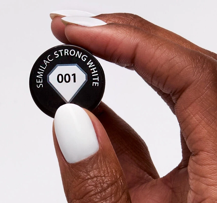 Der UV-Hybridlack Semilac 001 Strong White ist ein stark pigmentiertes, perfektes Weiß. Er bietet ein klassisches Finish und eine vollständige Deckkraft. Die Semilac Black & White Kollektion umfasst elegante, zeitlose Farbtöne, die beweisen, dass Schwarz und Weiß viele Facetten haben.