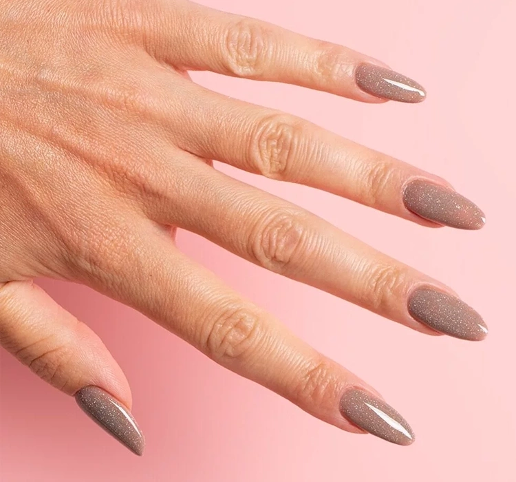 Eine dünne Schicht des Lackes auf eine ausgehärtete Schicht der Hybrid-Basis auftragen, anschließend unter einer UV/LED-Lampe aushärten. Nicht direkt auf die Nagelplatte auftragen. Wiederhole die Anwendung bei Bedarf für ein intensiveres Ergebnis. Schließe das Styling mit einem ausgehärteten Hybrid-Topcoat ab.