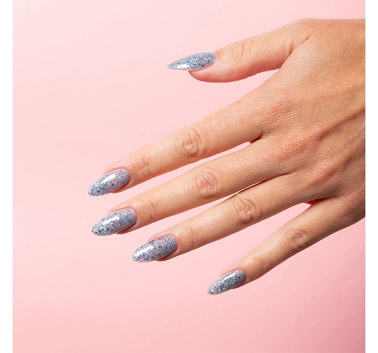UV-Hybridlack Semilac Winter Collection 610 Frosty Christmas ist ein Farbton, der sich durch blauen Glitzer in verschiedenen Formen und Größen auszeichnet und durch einen HOLO-Effekt ergänzt wird. Die blau schimmernde Basis mit holografischem Effekt macht ihn zu einem idealen, winterlichen und weihnachtlichen Akzent auf den Nägeln.