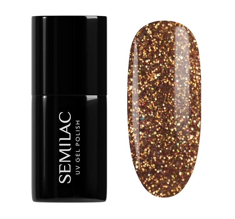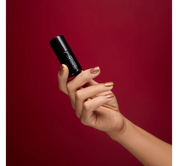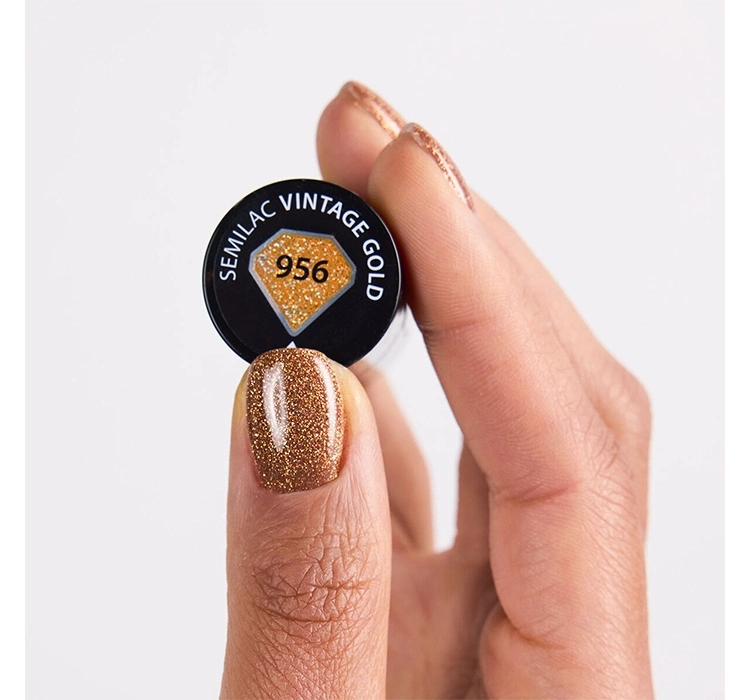 UV-Hybridlack Semilac Winter Wonderland 656 Vintage Gold ist ein luxuriöser, warmer Goldton, gefüllt mit intensiv glänzendem Glitter, der die Nägel wie flüssiges Gold umhüllt. Er enthält holografische Partikel, die einen mehrdimensionalen Glanz erzeugen und der Maniküre einen außergewöhnlich eleganten und edlen Charakter verleihen.