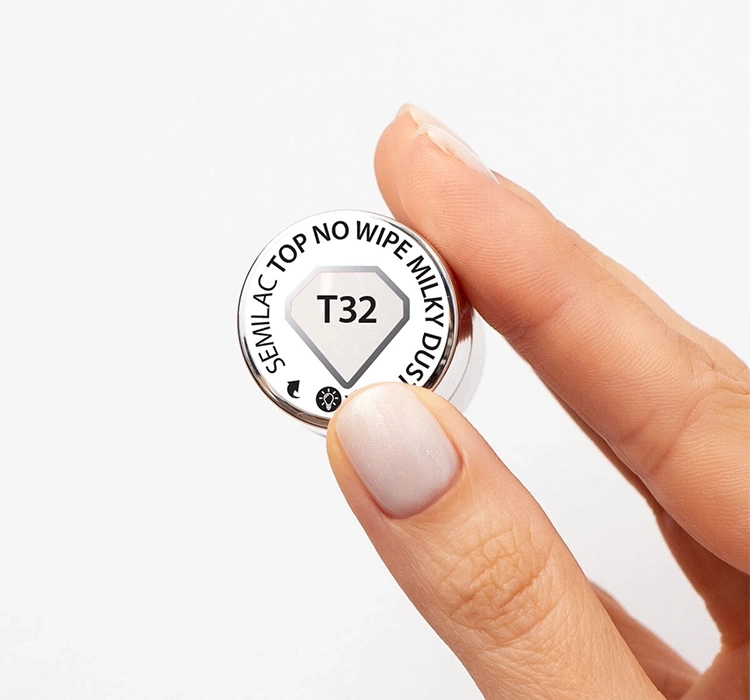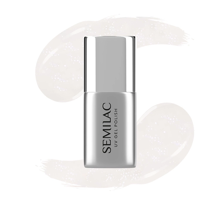 Top Coat für UV-Hybrid-Lacke der polnischen Marke Semilac enthält dezente Glitzerpartikel, die im richtigen Licht sanft reflektieren und den Eindruck einer schimmernden Perle erzeugen. Das Produkt sorgt auf den Nägeln für einen originellen Effekt und ist ideal, um dem Styling einen besonderen Charakter zu verleihen.