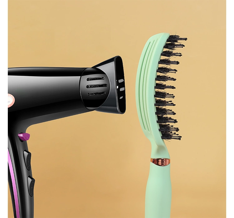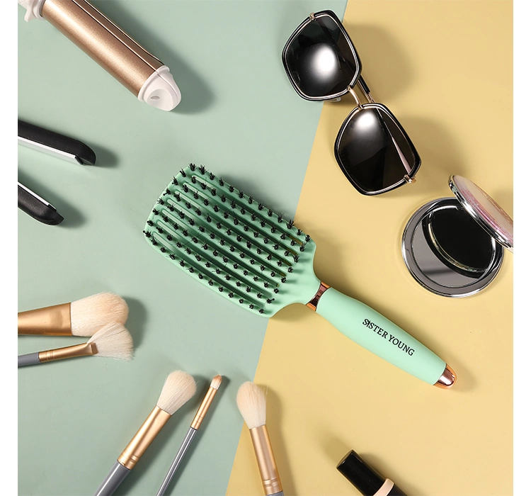 Die Sister Young OVIA BV Bürste zum Entwirren, Stylen und Modellieren von Haaren ist mit einer Mischung aus Nylon- und Wildschweinborsten ausgestattet. Diese Kombination verleiht dem Haar Glanz und Volumen. Darüber hinaus hat die Bürste antistatische Eigenschaften, wodurch das Haar nicht kraus wird oder sich statisch auflädt, und die abgerundeten Enden der Nylonborsten verhindern Irritationen der Kopfhaut und Schäden an der Haarstruktur.
