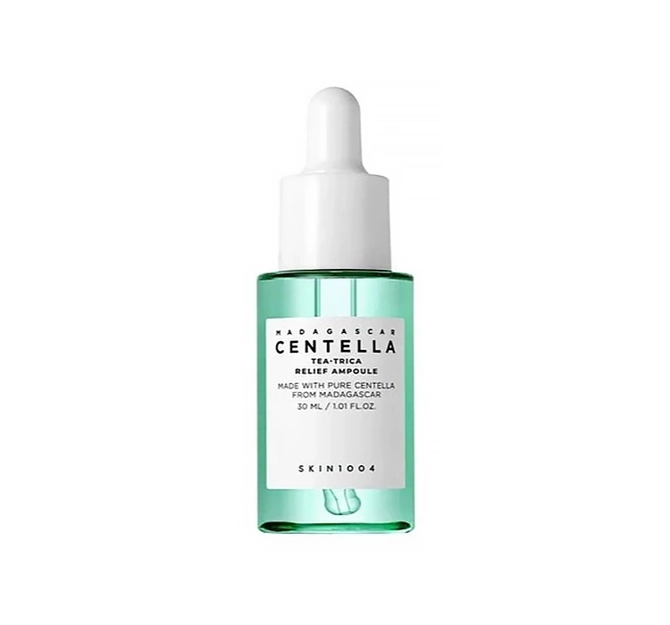 SKIN1004 Madagascar Centella Tea-Trica Relief Ampulle ist ein leichtes, beruhigendes Serum für fettige und problematische Haut, das wie eine intensive Rettung für empfindliche, gerötete und zu Unreinheiten neigende Haut wirkt. Die besonders sanfte Textur zieht schnell ein und belastet die Haut nicht, wodurch dieses Konzentrat ideal für alle ist, die eine Balance zwischen Pflege und angenehmem Hautgefühl suchen.