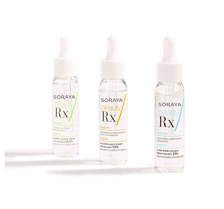 Willkommen in einer neuen Ära der Hautpflege - Soraya Beauty RX ist ein revolutionärer Ansatz zur Selbstpflege, der auf den besten pharmazeutischen Praktiken basiert und Wirksamkeit, wissenschaftliche Forschung und sorgfältig ausgewählte Inhaltsstoffe garantiert. Das Rx in der Pharmazie symbolisiert ein Rezept, und wir nutzen diese Metapher voll aus, indem wir Ihrer Haut die richtige Dosis Pflege geben, die sie benötigt. Wir setzen auf Medizinalisierung und wissenschaftlich bewiesene Lösungen, die von Experten empfohlen werden, dank einfacher, aber wirksamer Formeln, die den Prinzipien der Clean Beauty folgen.