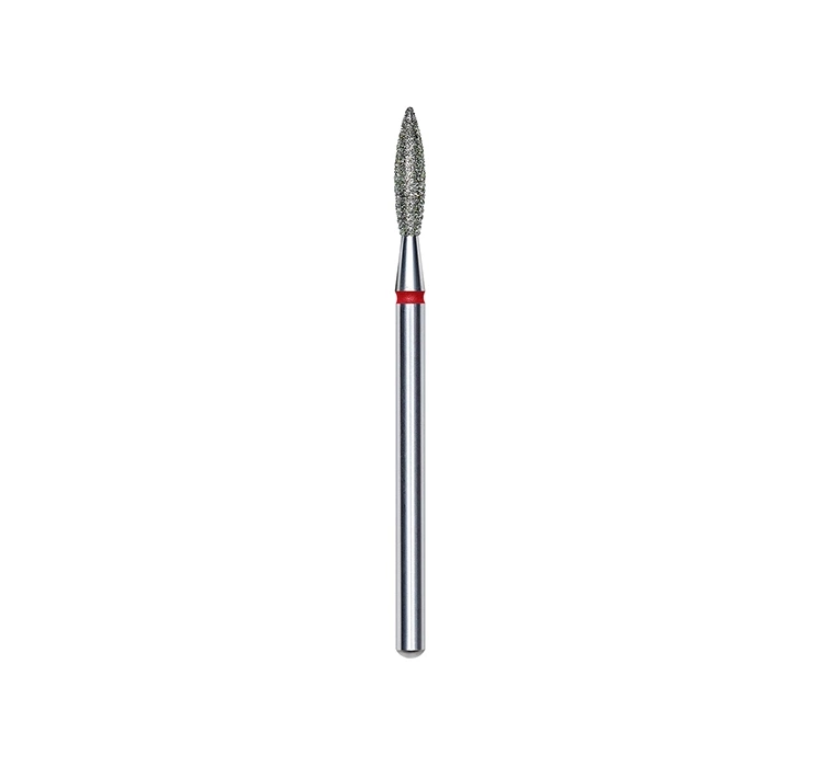 Der Diamantfräser in Flammenform (spitz zulaufende Tropfenform) Staleks PRO eignet sich perfekt zur Reinigung des Bereichs zwischen der natürlichen Nagelplatte und den seitlichen Nagelwällen. Dieser Fräser kann auch zum Entfernen von Hornhaut verwendet werden. Der Fräser hat einen Durchmesser von 2,3 mm.