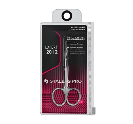 Staleks Pro Expert SE-20/2 sind professionelle Nagelhautscheren, die Präzision, Haltbarkeit und maximalen Arbeitskomfort vereinen. Dank der feinen, schmalen Klingen mit klassischer Krümmung ist es möglich, selbst kleinste Hautpartien präzise zu bearbeiten, was ein perfektes Maniküre-Finish ermöglicht. Das manuelle, spezialisierte Schärfen garantiert einen sauberen und präzisen Schnitt, während die perfekt polierte Oberfläche die Korrosionsbeständigkeit erhöht.