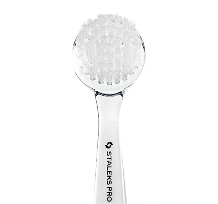 Die Borsten der Staleks Bürste bestehen aus synthetischen Fasern mit optimaler Festigkeit. Die Bürste entfernt effektiv Staub, der bei der Nagelbearbeitung entsteht, ohne Nagelhaut oder Nagelplatte zu beschädigen. Die schützende Kappe bewahrt die Borsten vor Verformung und Verschmutzung und gewährleistet somit Hygiene sowie eine lange Lebensdauer des Werkzeugs.