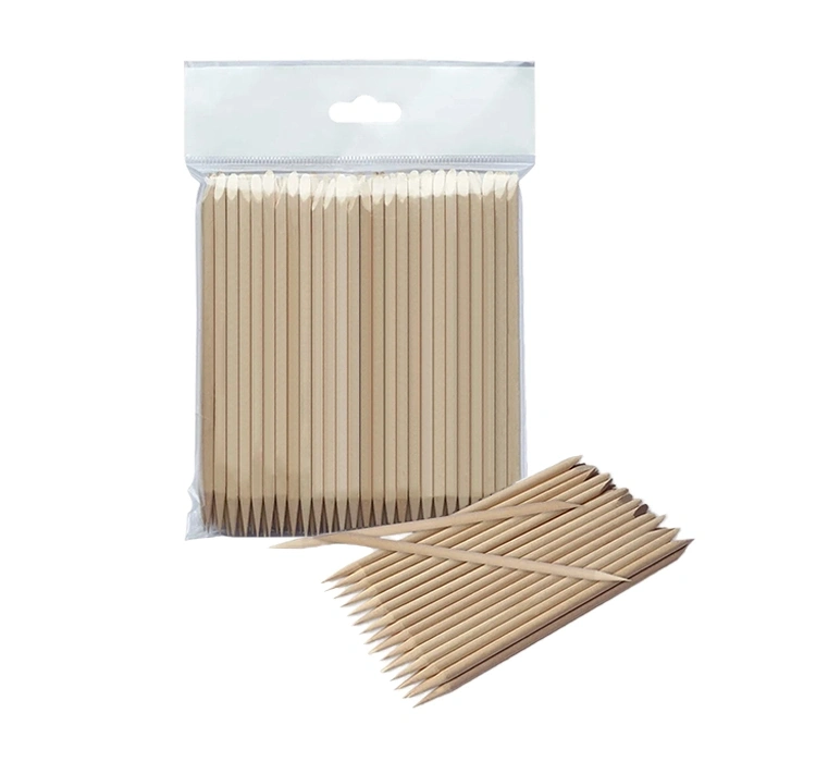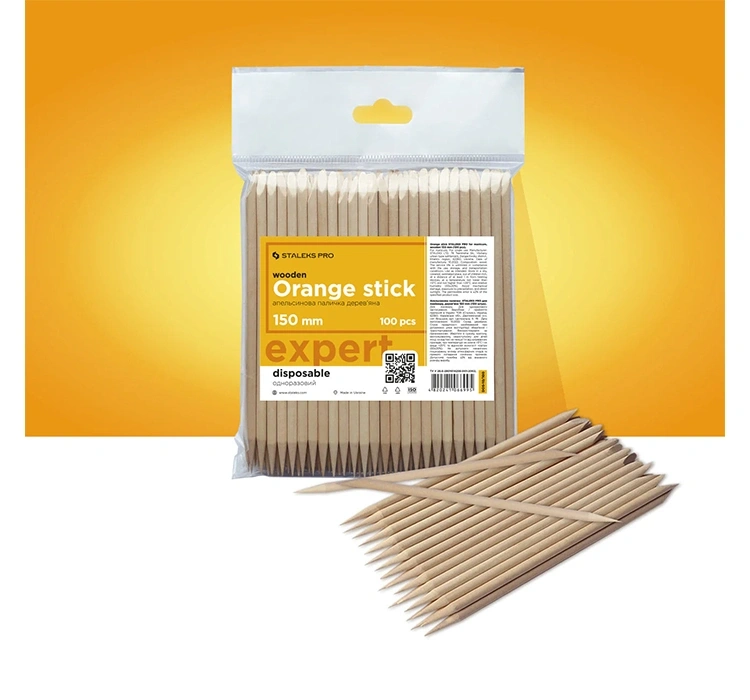 • Orangenholzstab 150 mm, 100 Stück. Aus robustem, natürlichem Orangetonholz gefertigt. Idealerweise glatt, spitz zulaufend für das präzise Abziehen von Haut. Ein notwendiges, einmal verwendbares Element für hygienische Maniküre und Pediküre.