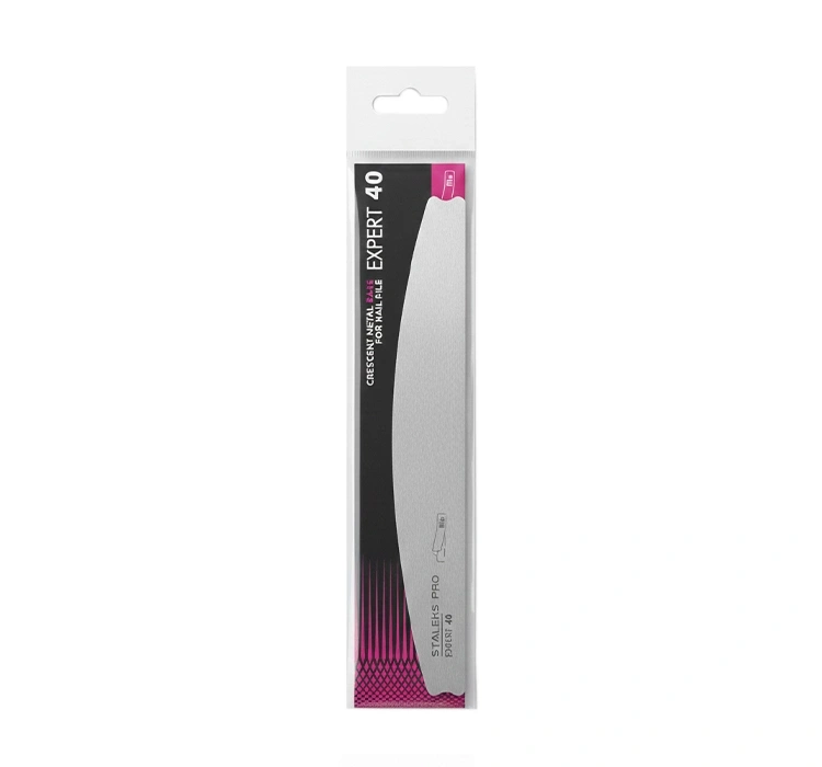 Die Metallbasis Halbmond Staleks Pro Expert 40 eignet sich ideal zum präzisen Feilen der Nagelform und der freien Nagelkante. Ihre ergonomische Halbmondform gewährleistet Stabilität und Kontrolle – unabhängig von der verwendeten Technik. Die Investition in eine wiederverwendbare Basis ist ein Schritt hin zu höchsten Sicherheits- und Hygienestandards.