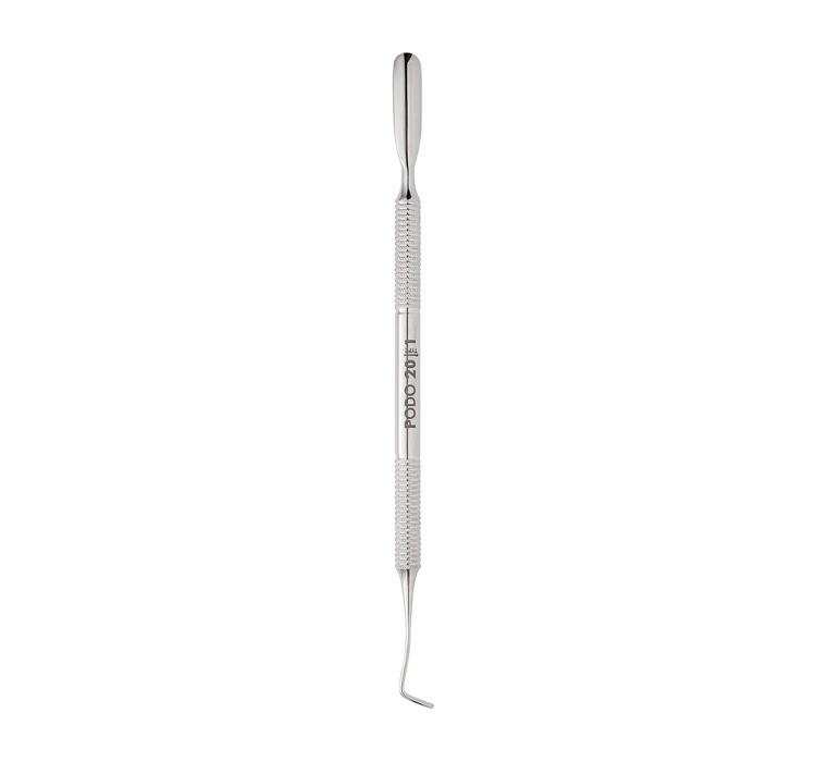 Pediküre-Spatel PODO PP-20/1 – Löffel und Schieber ist ausschließlich für den professionellen Gebrauch bestimmt. Das Werkzeug hat einen ergonomischen, geriffelten Griff, der während der Behandlung sicher in der Hand liegt. Es gehört zur Grundausstattung jedes Spezialisten und erleichtert die Arbeit erheblich. Es ist wichtig zu beachten, dass die Podologiesonde/der Schieber nach jeder Behandlung besonders gepflegt werden muss. Nach vorherigem Waschen, Desinfizieren und Trocknen sollte das Werkzeug einer Sterilisation unterzogen werden – unter Verwendung geeigneter Geräte und unter Bedingungen, die den geltenden Normen entsprechen.
