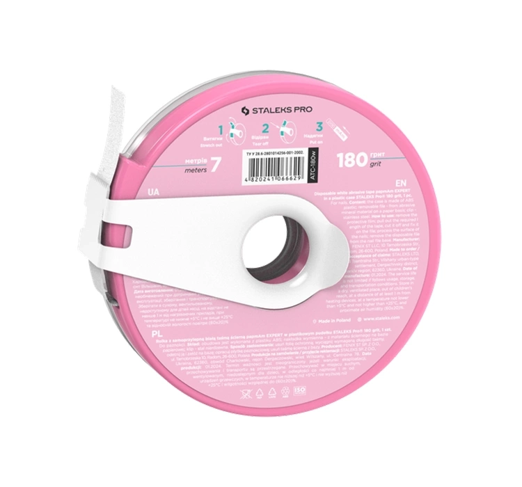 Die weiße Schleifrolle papmAm EXPERT im Kunststoffetui Staleks Pro ist ein praktischer Einweg-Aufsatz für Basisfeilen, ideal für Maniküre und Pediküre. Gefertigt aus Kraftpapier mit weichen, sicheren Enden, schützt der Aufsatz den Kunden vor Verletzungen und lässt sich dank der Möglichkeit des individuellen Zuschneidens flexibel anpassen. Das stilvolle, robuste Kunststoffetui schützt das Schleifband vor Verschmutzung und Beschädigung, während ein spezieller Clip das präzise Schneiden erleichtert.