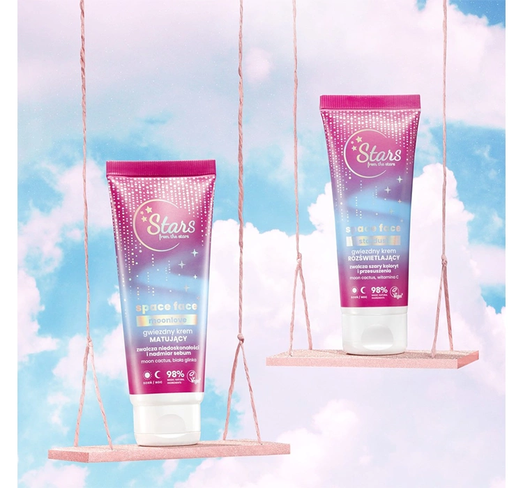 Stars from the Stars Space Face ist eine Reihe von Gesichtspflegeprodukten, die auf speziell ausgewählten hochwirksamen Inhaltsstoffen basiert. Die Serie Space Face eignet sich ideal zur Pflege aller Hauttypen, insbesondere für Mischhaut und Haut, die zu Mitessern oder Unreinheiten neigt. Die Space Face-Produkte haben gute, einfache Formeln, wundervolle Düfte und samtige Konsistenzen! Ihre nährenden Formeln bringen die Haut ins Gleichgewicht und helfen dabei, Unreinheiten und übermäßigen Glanz der Haut zu beseitigen.