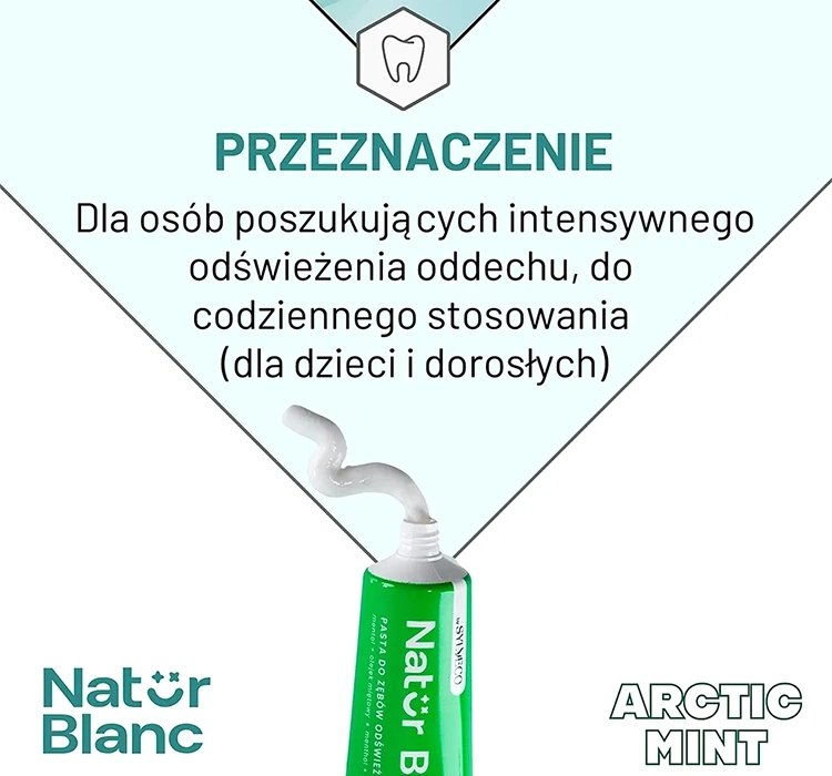 Sylveco Natur Blanc Arctic Mint – natürliche Zahnpasta, die für intensiven Atemfrischeeffekt und langanhaltendes Sauberkeitsgefühl sorgt. Dank der Kombination aus Menthol, Pfefferminzöl sowie Auszügen aus Eukalyptus und Gewürznelke reinigt sie den Mundraum gründlich und hinterlässt einen angenehmen Cooling-Effekt.