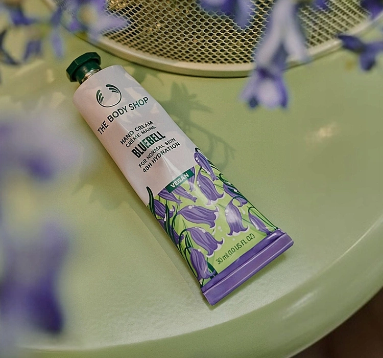 Die vegane Handcreme The Body Shop Bluebell schmilzt wunderbar auf der Haut und sorgt sofort für ein Gefühl von Komfort. Sie umhüllt die Haut mit einem subtilen, blumigen Duft und liefert die Nährstoffe, die notwendig sind, um ein schönes, gesundes Aussehen zu bewahren.