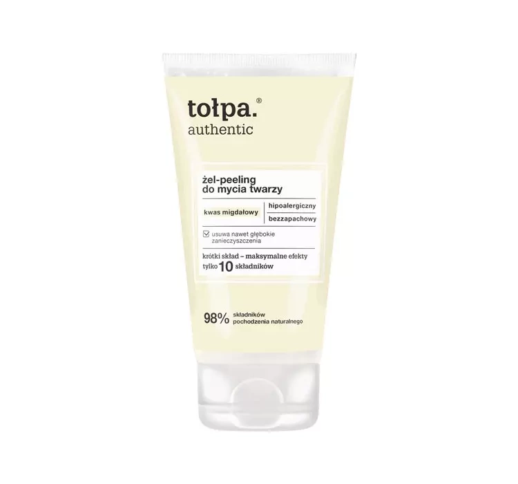tołpa authentic Gesichtsreinigungsgel-Peeling ist ein ausgezeichnetes Kosmetikprodukt, dessen Formel auf wertvoller Mandelsäure basiert. Das Gel entfernt gründlich alle Unreinheiten und Hornhaut von der Haut und hinterlässt sie wunderbar gereinigt und erfrischt. Es enthält nur 10 Inhaltsstoffe, die die Gesichtshaut perfekt pflegen und gleichzeitig das natürliche Gleichgewicht des Mikrobioms, den physiologischen pH-Wert und die Hydrolipid-Barriere erhalten. Das Kosmetikum ist hypoallergen und reizt nicht, wodurch es auch für sehr empfindliche Haut geeignet ist. Das Gel hinterlässt die Haut wunderbar und tief befeuchtet, glatt, samtig und vor allem frei von jeglichen Unreinheiten.