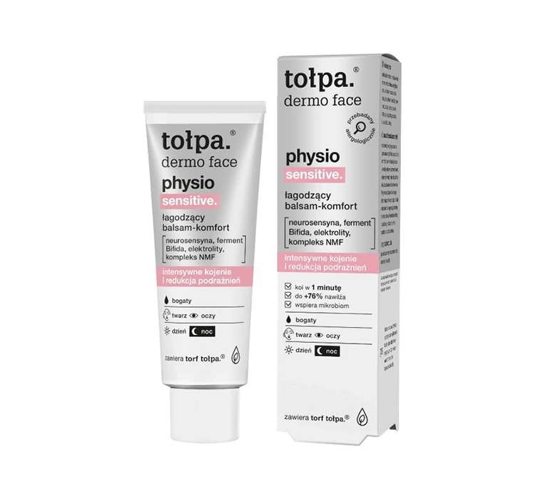 Tołpa Dermo Face Physio Sensitive beruhigende Komfort-Balsam ist eine Spezialformel für die Pflege empfindlicher, schnell reagierender und reizanfälliger Haut. Seine reiche Konsistenz wirkt beruhigend und stellt den Hautkomfort wieder her, indem es Brennen, Spannungsgefühle und Rötungen lindert. Das Produkt wirkt an der Ursache des Problems und sorgt für das natürliche Gleichgewicht der Haut.