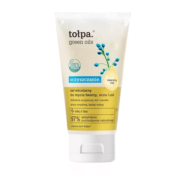 Das Mizellengel von Tołpa aus der Green Oils-Serie ist ein mildes Kosmetikum, das das Gesicht reinigt und Unreinheiten entfernt.