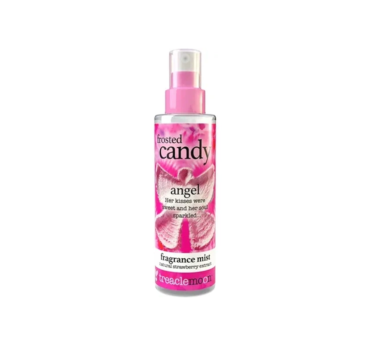 Treaclemoon Frosted Candy Angel ist ein Körperspray, das die Haut mit einem süßen Duft von saftiger Birne, Zuckerwatte und reifen Erdbeeren umhüllt. Dank des 100 % natürlichen Erdbeerextrakts duftet das Produkt nicht nur verführerisch, sondern spendet Feuchtigkeit und pflegt die Haut, sodass sie weich und glatt bleibt.