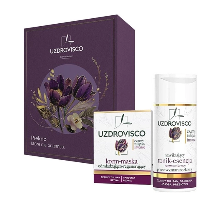 Das Gesichtspflege-Set Uzdrovisco Schwarze Tulpe Intense ist die perfekte Lösung für reife Haut und Frauen, die ihre Haut bewusst pflegen und ihre natürliche Schönheit unterstreichen möchten. Das Set enthält eine feuchtigkeitsspendende Tonic-Essenz, die nährt, hydratisiert und das natürliche pH-Gleichgewicht der Haut wiederherstellt, sowie eine verjüngende und regenerierende Creme-Maske, die mit hochwirksamen Inhaltsstoffen Falten reduziert, die Haut strafft und intensiv regeneriert.