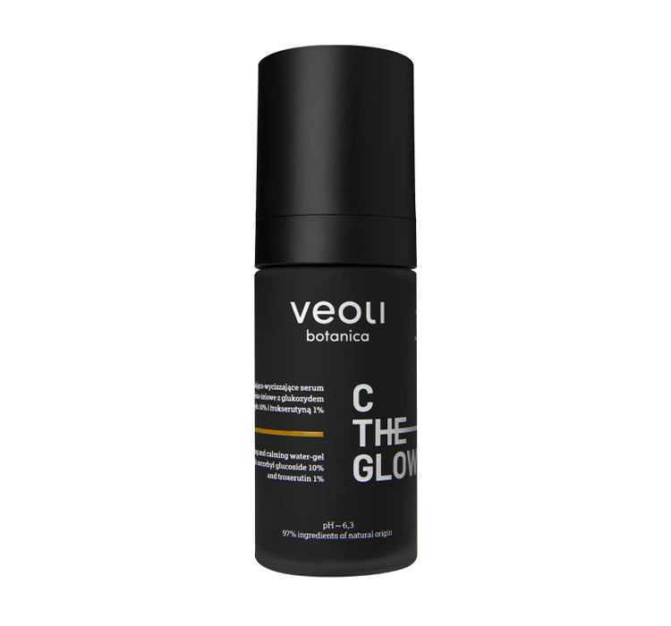 Veoli Botanica C The Glow Serum hellt die Haut auf und beruhigt empfindliche Haut. Troxerutin stärkt die Blutgefäße und reduziert Rötungen. Ascorbyl Glucoside, eine stabile Form von Vitamin C, sorgt für einen gleichmäßigen Teint, während Centella Asiatica die Haut beruhigt und den Komfort erhöht.