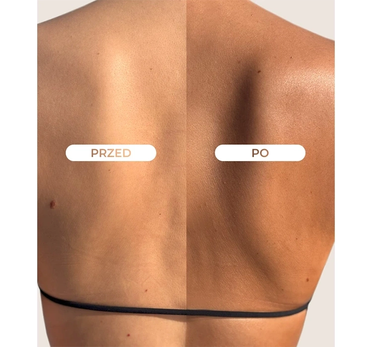 Die leichte, nicht fettende Textur lässt sich leicht auftragen und streifenfrei verteilen. Bereits nach 1–2 Stunden ist eine leichte Bräune sichtbar, die sich im Laufe der Zeit weiterentwickelt. D-Panthenol und Hyaluronsäure spenden intensive Feuchtigkeit, glätten die Haut und sorgen für ein angenehmes Hautgefühl während der Anwendung.
