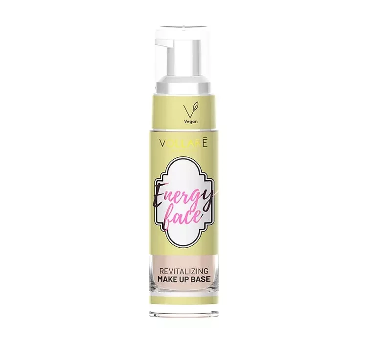 Vollaré Energy Face Make Up Base ist eine energetisierende Basis, die nicht nur als Grundlage für Make-up, sondern auch als pflegende Kosmetik dient. Sie wird deinen Teint stimulieren und ihm jeden Tag Energie und Glanz verleihen. Sie enthält kein Silikon in der Zusammensetzung und zieht dank ihrer leichten Konsistenz schnell ein. Darüber hinaus wurde sie mit Rotorangen- und Grapefruitextrakt angereichert, was die Haut aufhellt und den Alterungsprozess verzögert.