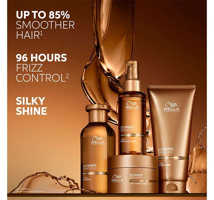 Darüber hinaus glättet die Ultimate Smooth Haarspülung sichtbar die Strähnen, macht sie weich und verleiht ihnen natürlichen Glanz. Der Glättungseffekt hält bis zu 72 Stunden an. Die Formel der Ultimate Smooth Spülung basiert auf sorgfältig ausgewählten aktiven Inhaltsstoffen wie Squalan und Omega-9, die die Haarstruktur sowohl von innen als auch von außen stärken und reparieren.