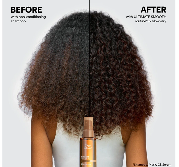 Für beste Ergebnisse sollte das Serum Wella Professionals Ultimate Smooth in Kombination mit den weiteren Produkten der Ultimate Smooth-Linie verwendet werden.
