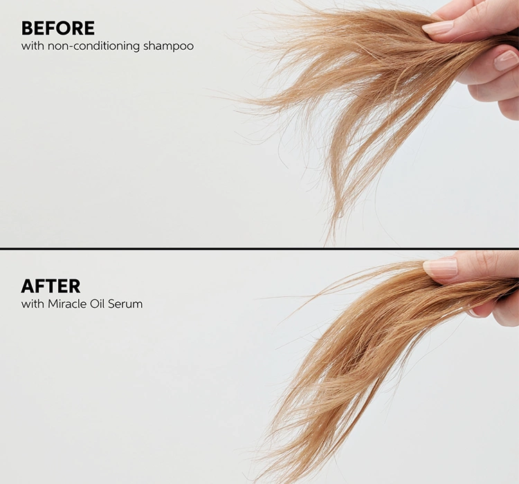 Das glättende Haarserum in Ölform Miracle Oil Serum Wella Professionals Ultimate Smooth ist ein vielseitiges Produkt, das sofort den Zustand von trockenem, mattem und krausem Haar verbessert. Seine leichte, nicht beschwerende Formel spendet innerhalb von 30 Sekunden Feuchtigkeit, glättet und schützt das Haar vor hohen Temperaturen sowie UV-Strahlen. Dank Omega-9 und Squalan repariert das Serum das Haar sowohl von innen als auch von außen und sorgt bis zu 96 Stunden lang für anhaltende Glätte.