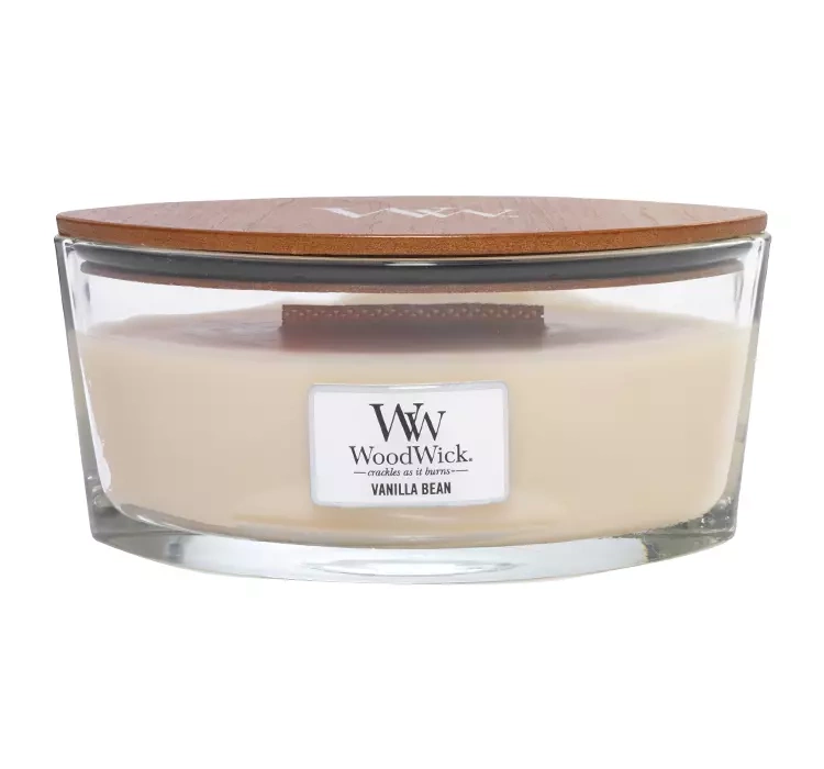 WoodWick Ellipse Candle Vanilla Bean verführt mit einem warmen Duft von süßer Vanille.
