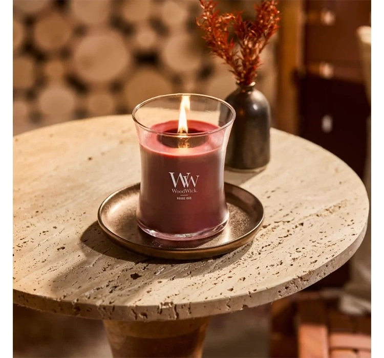 Entdecke den luxuriösen und raffinierten Duft der WoodWick Rouge Oud Kerze. Diese Kerze vereint elegante, dunkle Blüten mit reichhaltigen Holz- und Gewürznoten. Sie wurde geschaffen, um deinem Zuhause den beruhigenden Klang knisternden Holzes zu schenken und bietet ein außergewöhnliches, vielschichtiges Dufterlebnis.