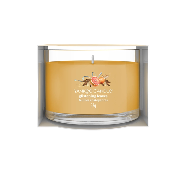 Erlebe die Magie des Herbstes mit Yankee Candle Glistening Leaves. Diese Mini-Duftkerze ist eine ideale Möglichkeit, dein Zuhause mit einem erfrischenden und zugleich warmen Aroma zu erfüllen. Golden schimmernde Blätter tanzen im kalten Wind, während herbe Zitrusnoten sich mit dem Duft von Eichenmoos und Patchouli verbinden – für eine elegante und nostalgische Atmosphäre.