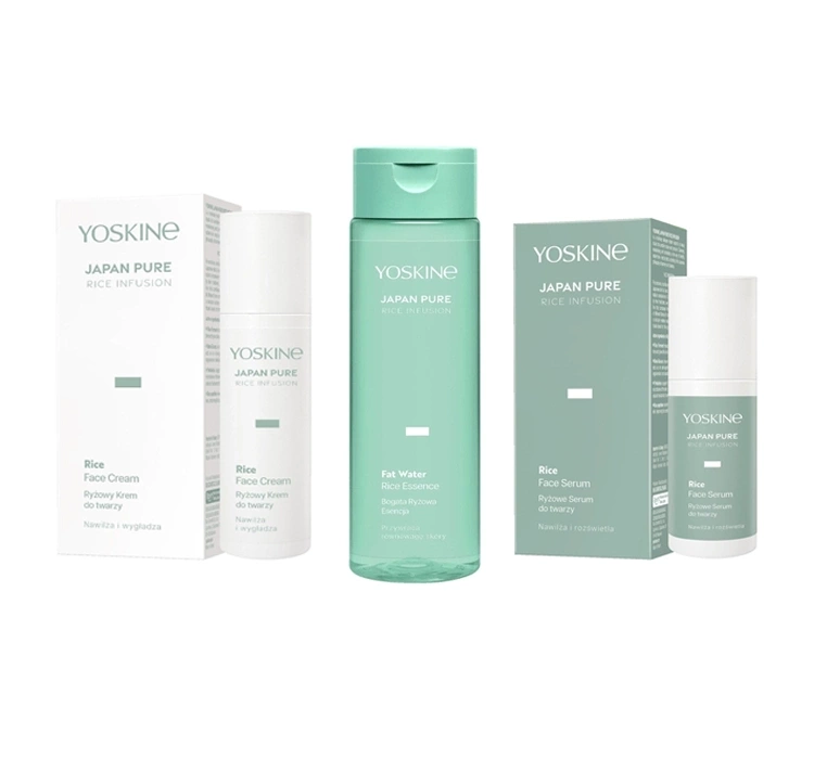 Das Geschenkset Yoskine Japan Pure Rice Infusion ist ein kompletter Pflegeritus, der für jeden Hauttyp entwickelt wurde, insbesondere für trockene, empfindliche und regenerationsbedürftige Haut. Die Kosmetika aus dem Yoskine Set spenden intensiv Feuchtigkeit, glätten und nähren die Haut und unterstützen ihre natürliche Elastizität sowie ein strahlendes Aussehen. Die Zusammensetzung des Sets basiert auf aktiven Inhaltsstoffen aus Reis – Reisferment spendet Feuchtigkeit und verleiht Leuchtkraft, Beta-Glucan beruhigt und unterstützt die Regeneration, Präbiotika stärken das Hautmikrobiom und Reispeptide nähren die Haut und verbessern den Zustand der Epidermis. Die ideale Wahl für alle, die eine umfassende Pflege im Geiste des japanischen Schönheitsrituals suchen.