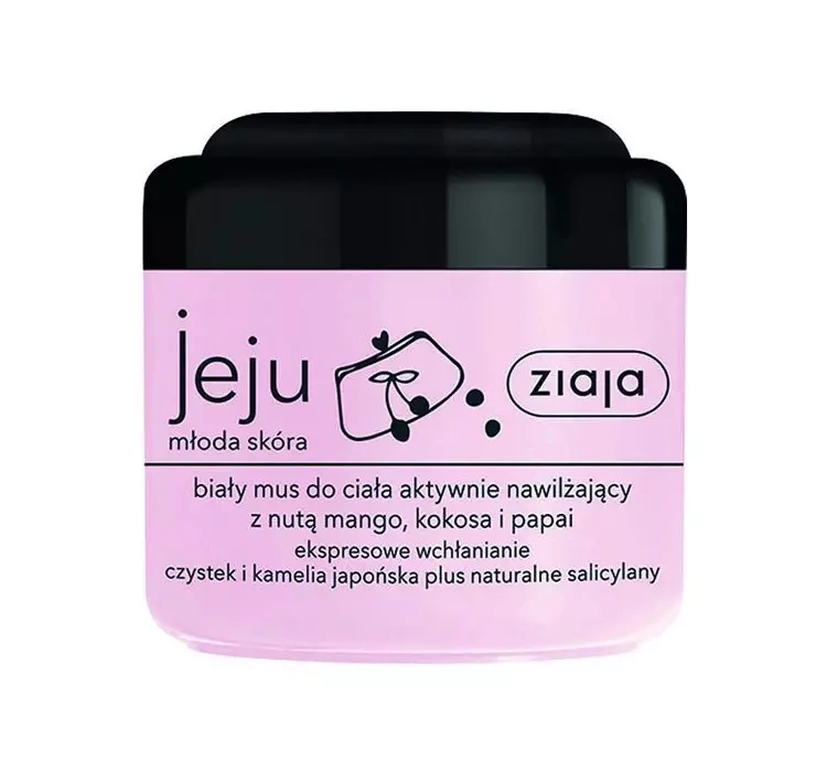 Die Ziaja Jeju aktiv feuchtigkeitsspendende weiße Körpermousse mit einem Hauch von Mango, Kokosnuss und Papaya, erfüllt die besonderen Bedürfnisse junger Haut. Sie verbessert das Aussehen, erfrischt und verschönert. Sie hilft, Unebenheiten loszuwerden und lindert Irritationen und Rötungen. Die Mousse enthält pflanzliche Wirkstoffe und duftet wie ein Cocktail aus exotischen Früchten. Die White Body Mousse spendet Feuchtigkeit, glättet und macht die Haut weich.