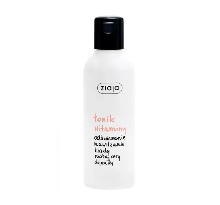 Das Ziaja Tonic aus der Vitamin Serie tonisiert und reinigt die Haut nicht nur, sondern spendet auch Feuchtigkeit und schenkt der Haut Frische. Das Kosmetikum lindert Reizungen und ist perfekt für alle Arten von reifer Haut. Das Tonikum ist absolut hautverträglich und wurde dermatologisch und allergologisch getestet. Das Produkt enthält keinen Alkohol. Das Tonikum bereitet deine Haut perfekt auf weitere Pflegebehandlungen vor und macht sie erfrischt, mit Feuchtigkeit versorgt und perfekt glatt.