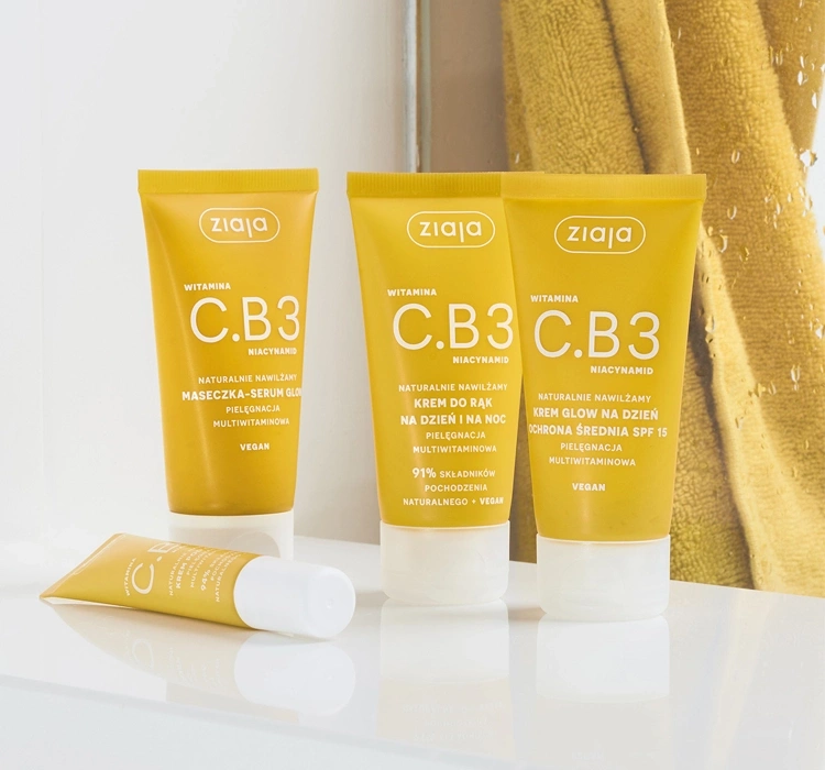 Die Formel der Ziaja Vitamin C.B3 Creme enthält eine Essenz aus Vitamin C und B3 (Niacinamid), die den natürlichen Hautschutz stärkt und den Hautton verbessert. Darüber hinaus ist sie mit den Vitaminen B5, B6 und E sowie einem natürlichen Peptidkomplex angereichert, die die Haut mit Feuchtigkeit versorgen, glätten und beleben – für eine sichtbare Verbesserung des Hautbildes. Die Schutzcreme von Ziaja verstopft die Poren nicht und sorgt für ein angenehmes Hautgefühl den ganzen Tag über.